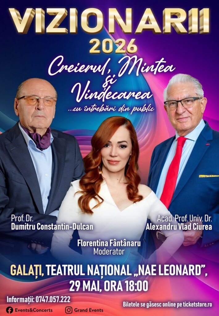 Bilete online : https://ticketstore.ro/ro/bilete/11656/vizionarii-2026-creierul-mintea-i-vindecarea-galati , https://ticketstore.ro/ro/bilete/11588/vizionarii-2026-creierul-mintea-i-vindecarea-galati